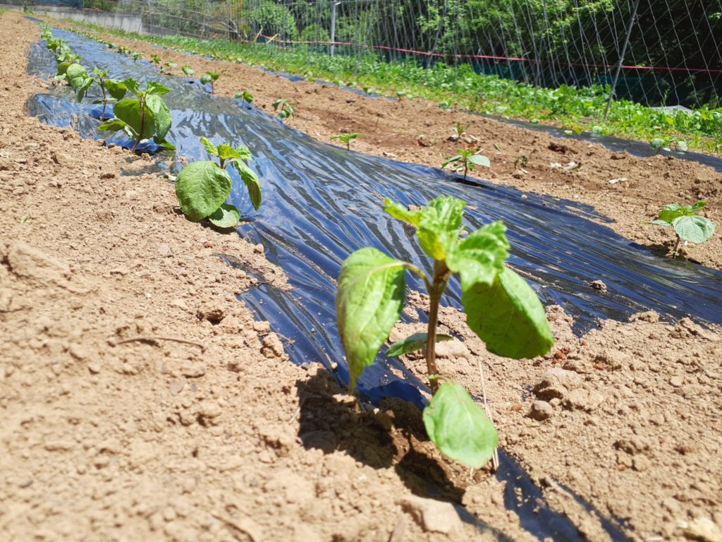 こちらは数日前の写真ですが青シソ。去年の栽培から自家採種した種になります。