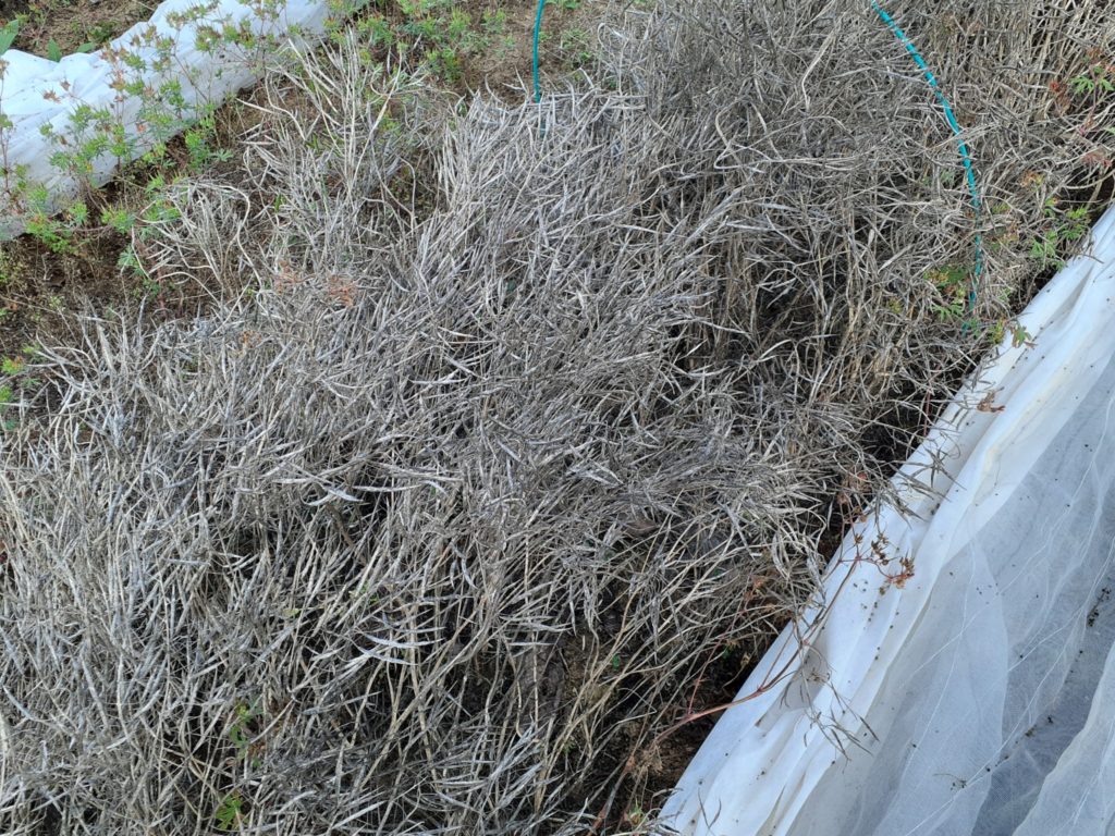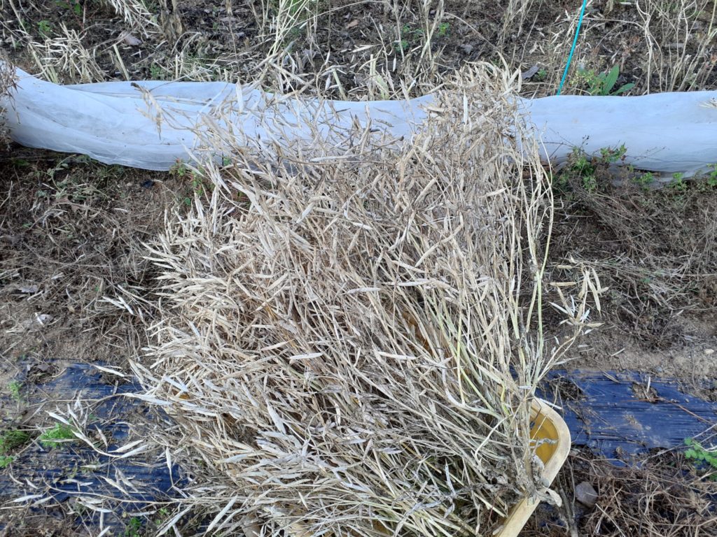 晴れの日が続いている内に山東菜と水菜の種取りと、ネギ苗の救出で草取りをしました。どうしても後回しに